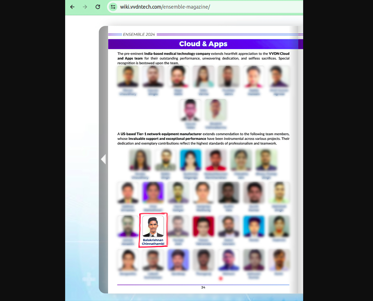 VVDN: Recognized as the One of the Best Employee of the Year 2024 and my name & pic were featured in the VVDN Magazine 2024